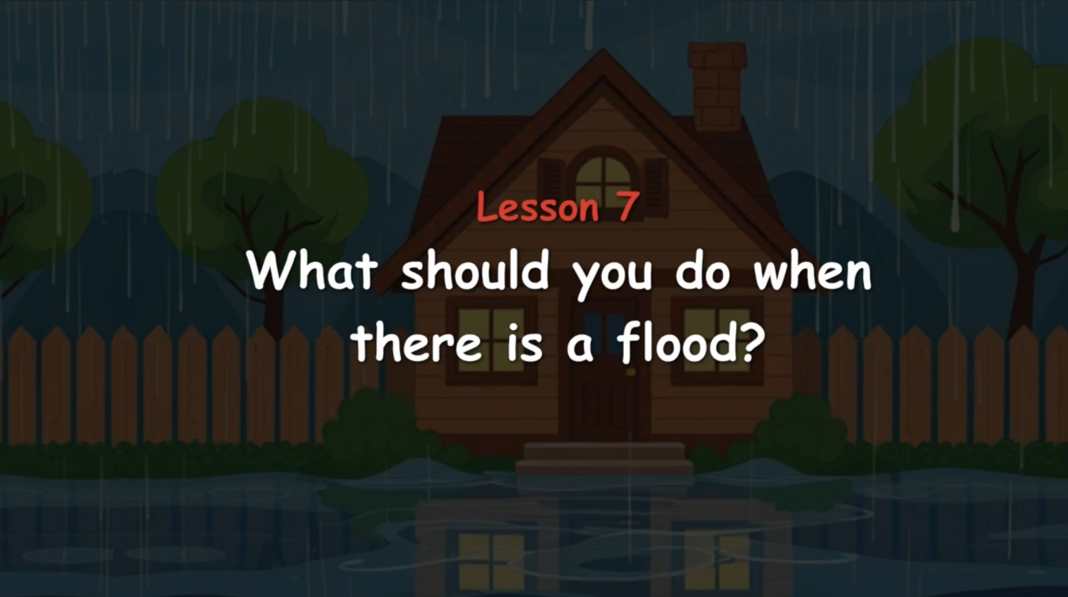 In this lesson, we'll learn what to do if there's a flood. We'll talk about how to stay safe by going to higher ground, listening to adults, and avoiding floodwater. You'll see why it's important to stay calm and follow instructions. By the end, you'll know how to stay safe and smart during a flood!